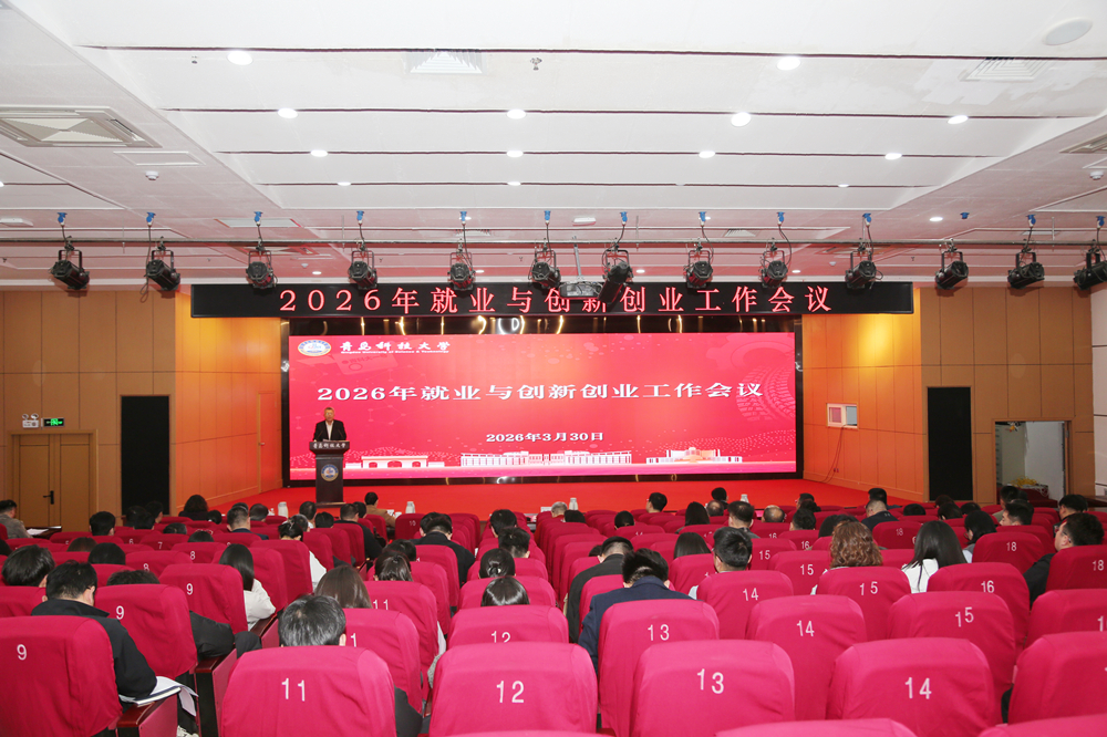 3月30日,学校2026年就业与创新创业工作会议在崂山校区英科报告厅举行。党委书记杨天梅出席会议并讲话。党委常委、副校长王震,党委常委、宣传部部长张洪坤出席会议。