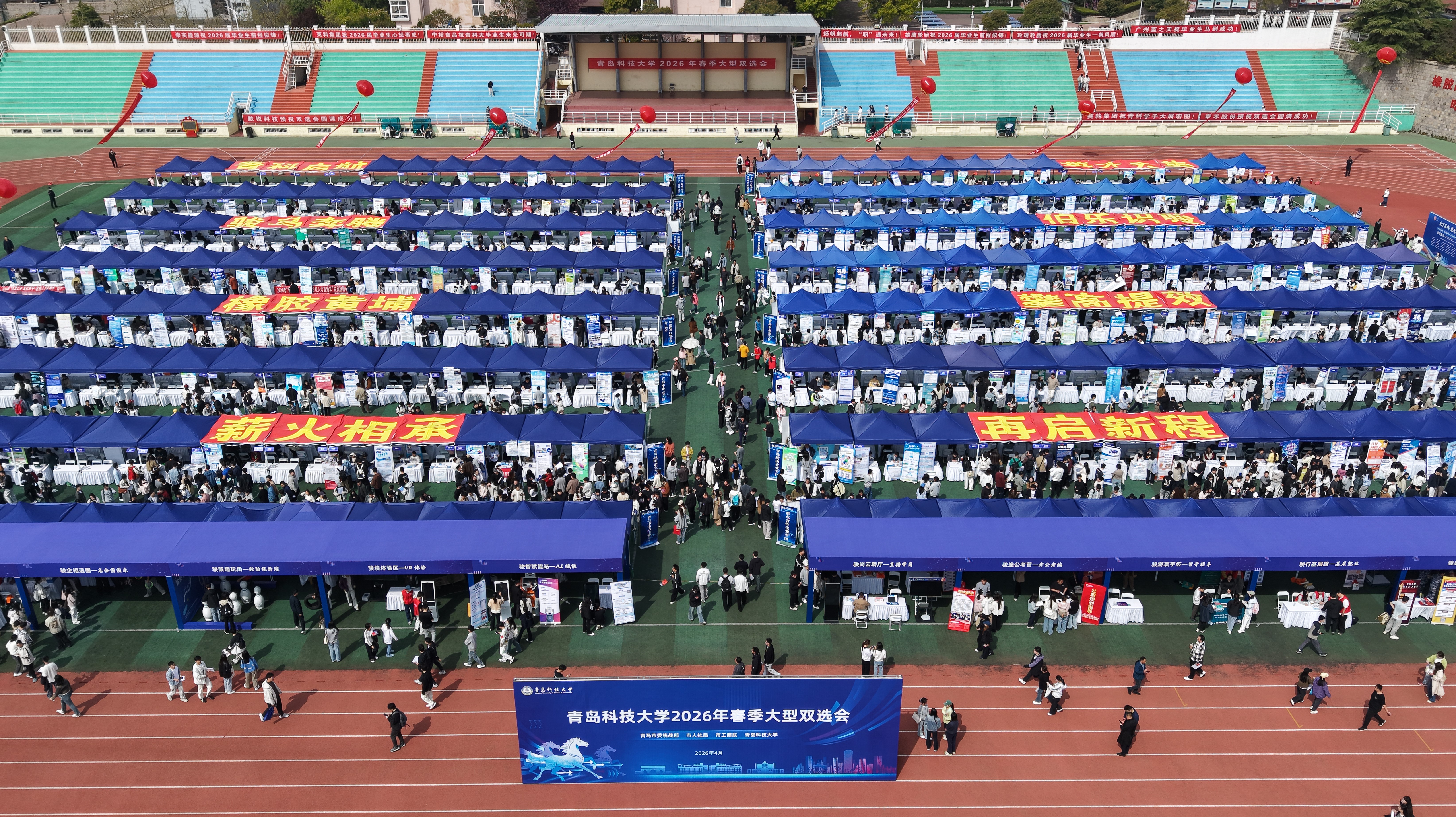 4月16日,青岛科技大学2026年春季大型双选会在崂山校区举行。山东省教育厅高校学生处副处长张健,青岛市委统战部副部长、市工商联党组书记刘传华,市工商联党组成员、副主席张宣付,青岛市公共就业和人才服务中心党委委员、副主任秦冬梅,学校党委书记杨天梅,党委常委、副校长王震深入现场调研指导。
