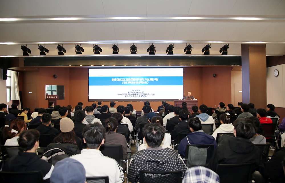 张宏科回顾了互联网发展历程,介绍了其团队在新型网络技术领域的研究成果,涵盖了理论架构、技术实现路径及未来发展方向,并展示了相关技术在轨道交通、空天地一体化网络和低空产业等领域的工程应用及发展前景。