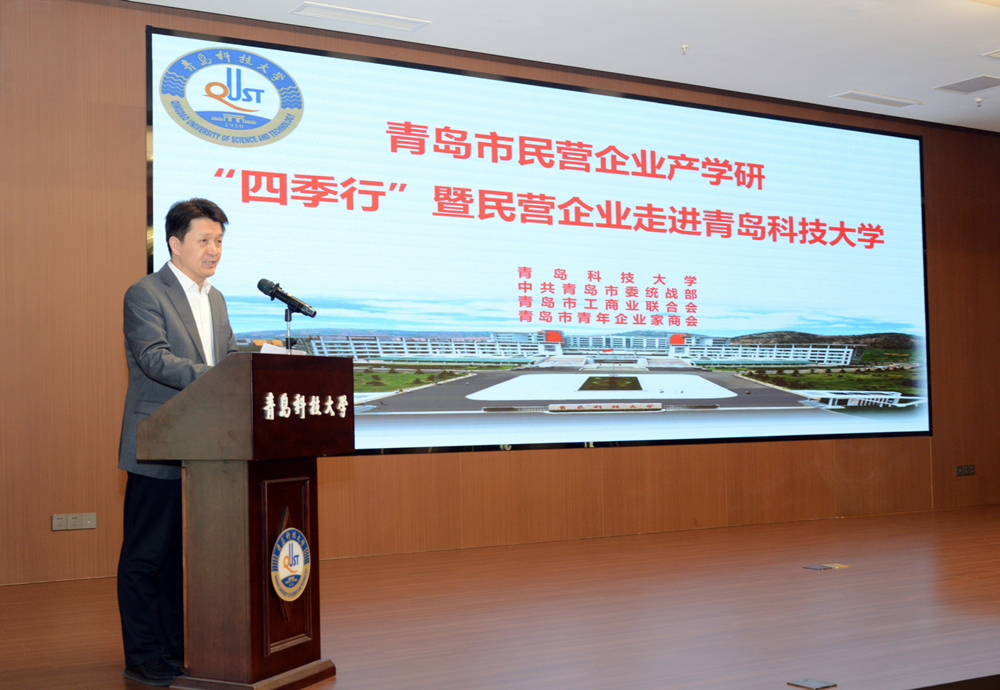 为深化产学研融合、精准对接产业需求,助力青岛民营经济高质量发展与新质生产力培育,近日,青岛市民营企业产学研“四季行”暨民营企业走进青岛科技大学活动举办。本次活动由青岛市委统战部、市工商联联合主办,青岛科技大学承办。青岛市委统战部副部长、市工商联党组书记刘传华,青岛科技大学党委常委、副校长吴明铂出席活动并讲话。来自全市橡胶、新材料等重点产业领域的民营企业家代表、青岛市青年企业家商会会员、青岛科技大学专家教授等约100人参加活动。