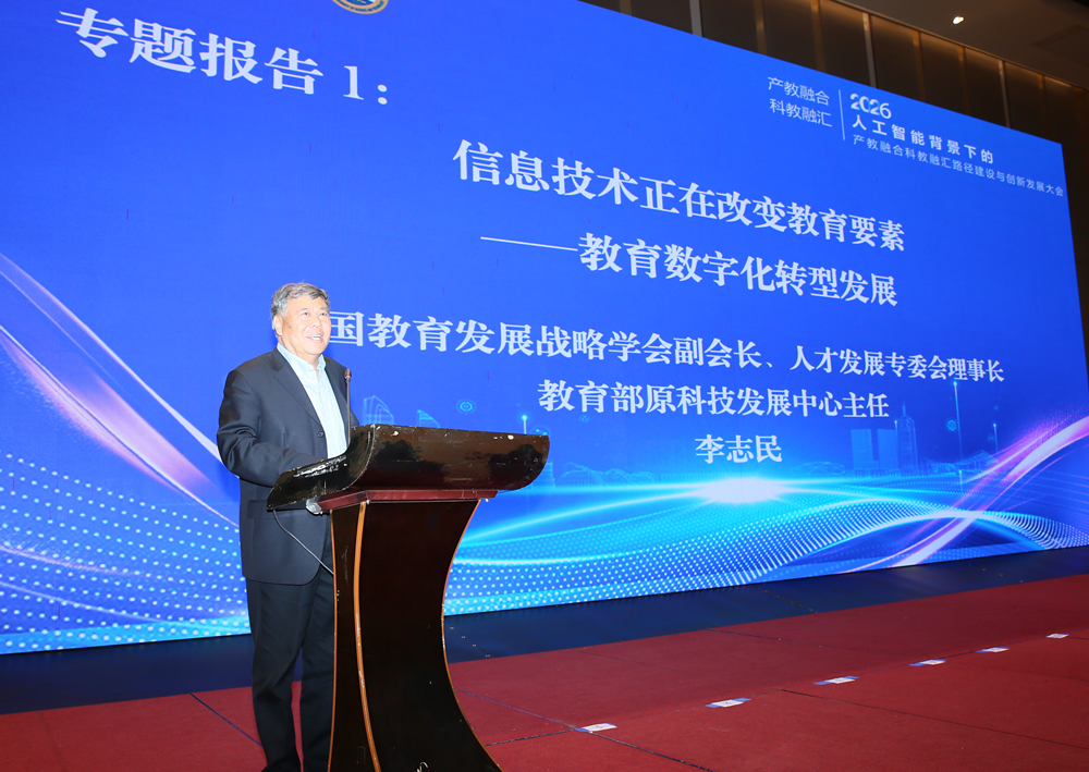 4月18日,由中国高等教育学会指导,中国高等教育培训中心主办,山东省高等教育学会、青岛科技大学承办的人工智能背景下的产教融合科教融汇路径建设与创新发展大会在青岛举行。中国高等教育学会副会长、原秘书长、中国高等教育培训中心主任姜恩来,山东省高等教育学会副会长杨同毅,青岛科技大学党委书记杨天梅出席会议并致辞。中国教育发展战略学会副会长李志民,山东省高等教育学会特邀副会长、青岛科技大学原校长陈克正等专家学者作主题报告。青岛科技大学副校长李金红主持会议。